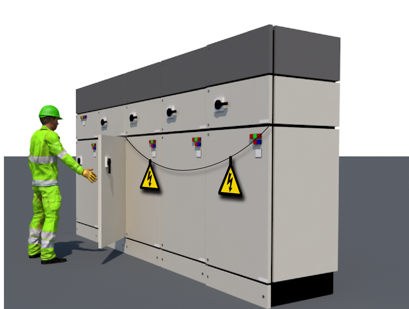 Adjacent live switch panels shall be distinguished by additional, clearly visible means, for example clear warning signs secured to the front of doors.